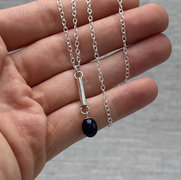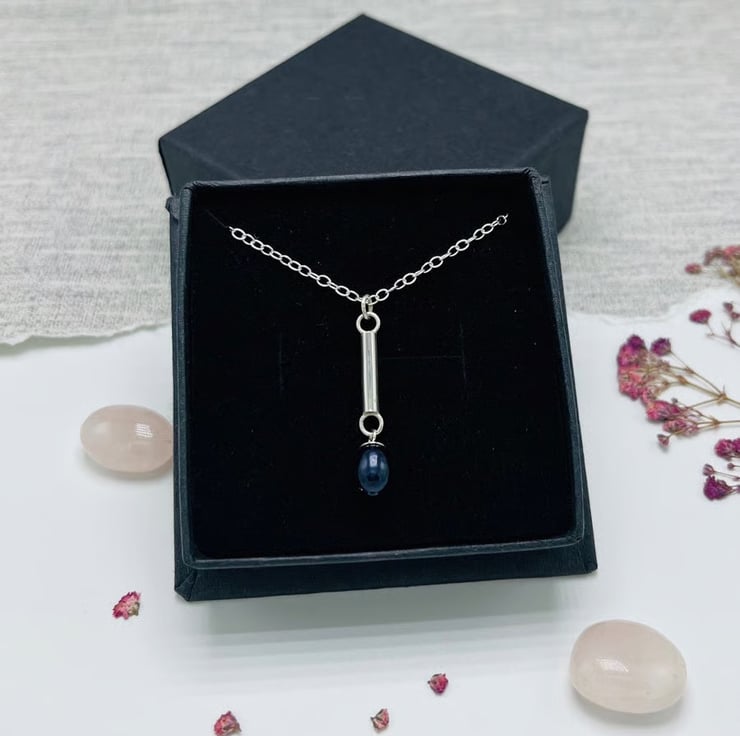 This handmade petrol blue pearl bar drop earrings and pendant set is perfect for those who love classic beauty with a unique twist. The deep, shimmering blue pearls are rich in colour and full of character, a striking alternative to traditional white, while still feeling timeless and elegant.