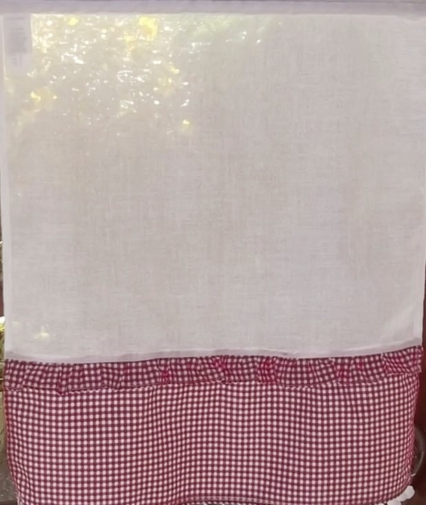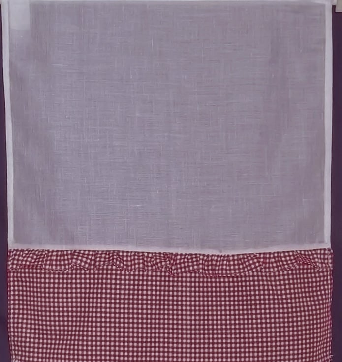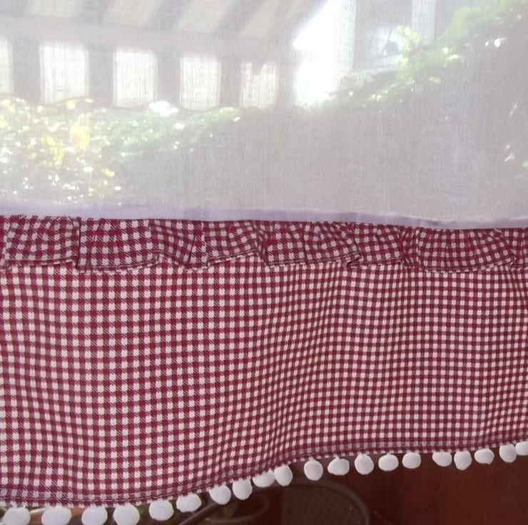 Small curtain Brise bise window panel Handmade White muslin Red gingham