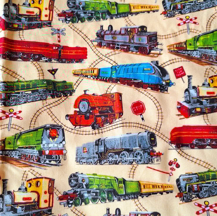 Steam trains are a constant favourite with boys of all ages! (And some girls!) I fairly frequently get asked to make a train apron for a husband or adult son.