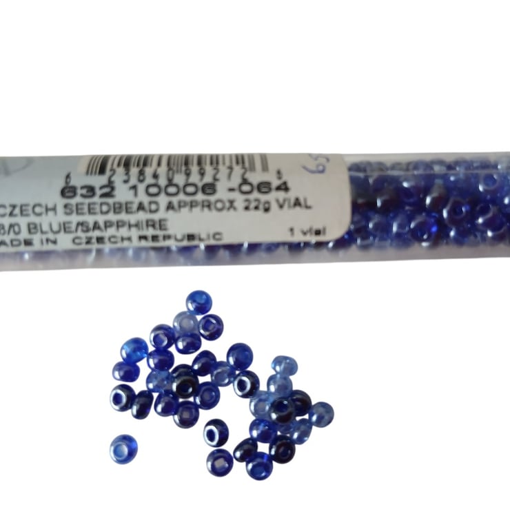 This is a selection of seed beads left over from my shop. All are brand new and unused and are good quality Czech beads.Comes in a pack of three of mixed sizes. Two are 6/0 and one is 10/0.