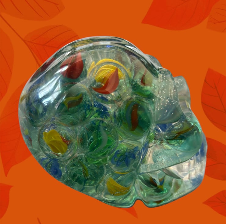 These resin skulls can be made in various colours, have flowers inside, marbles, shells etc but please message me regarding how you want your skull to look.