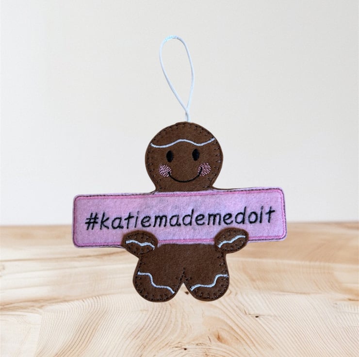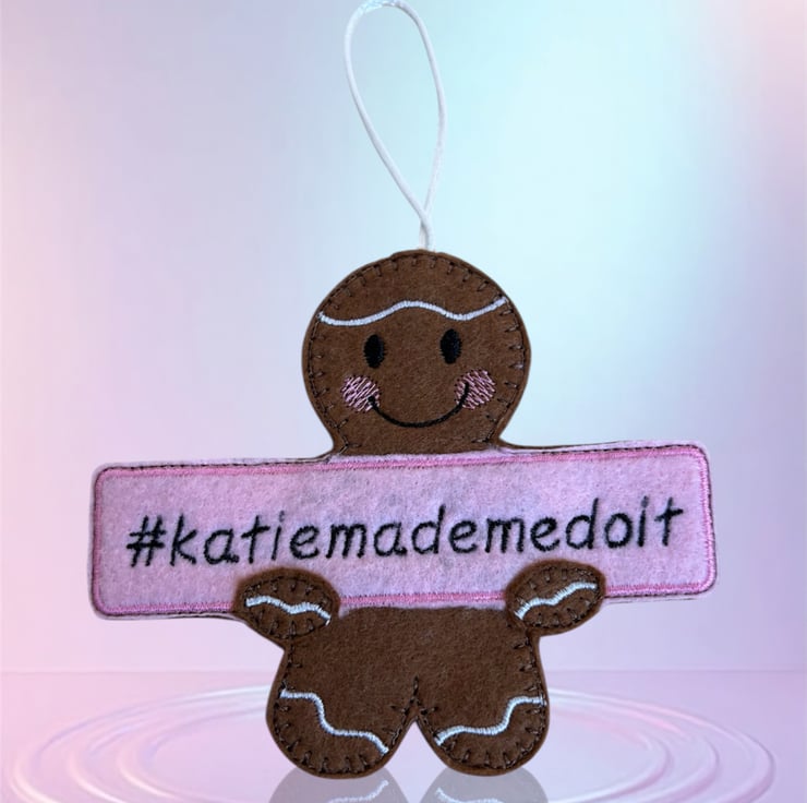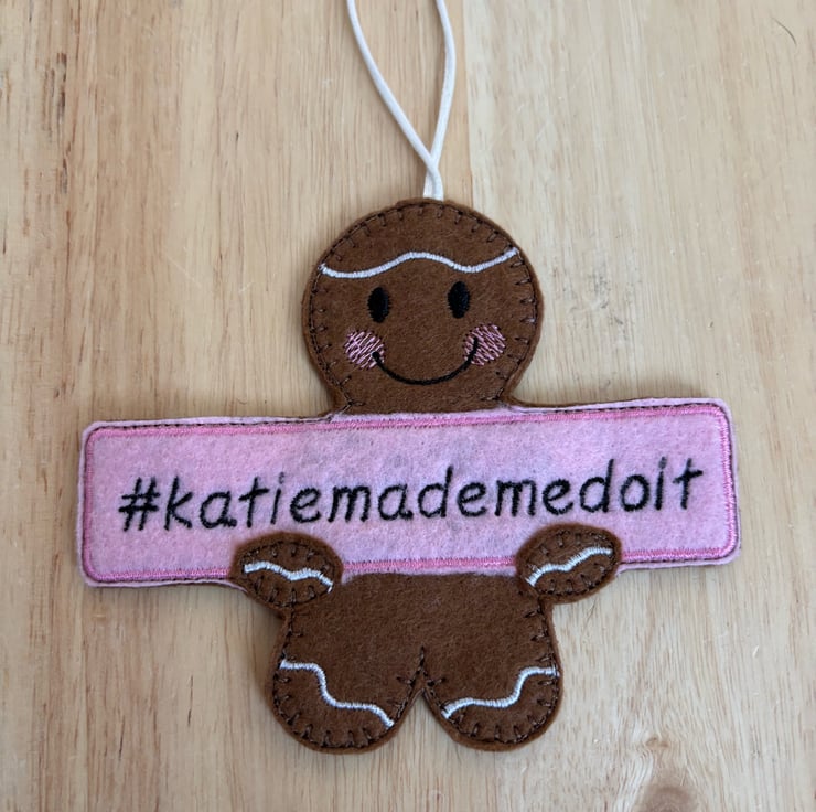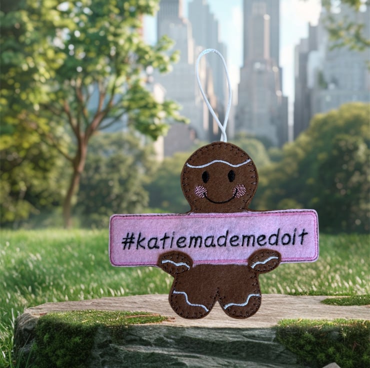 Handmade embroidered gingerbread man.
