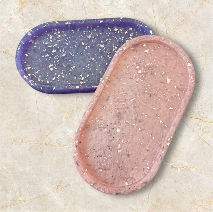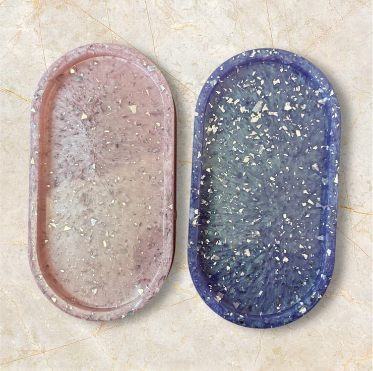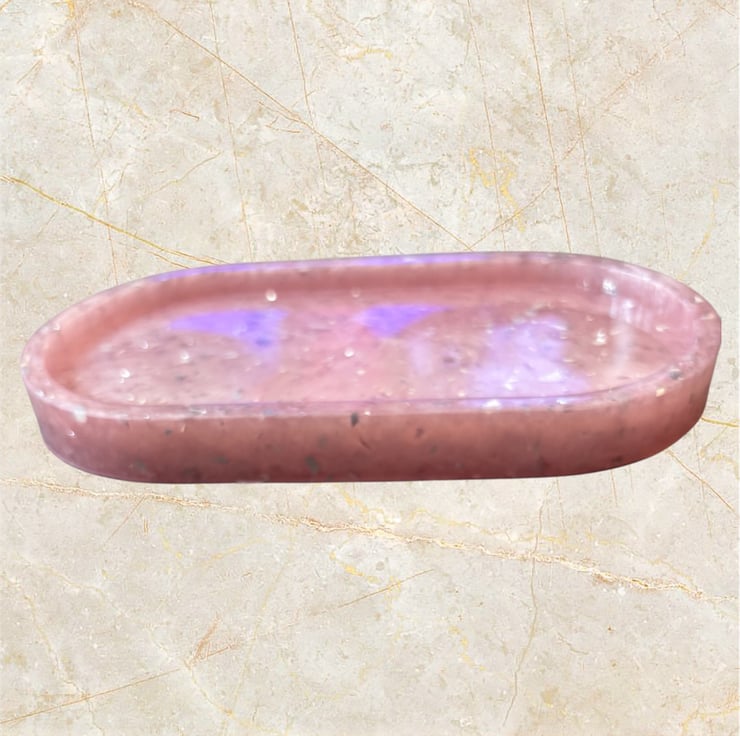 Resin made with colour and metallic flakes or glitter. Message to request what colour you require or I will just send one. Measures approx 18cm x 9.5cm x 2cm