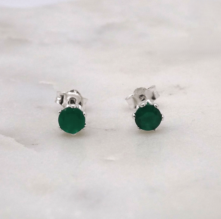 Green Onyx Faceted Round 4mm. Beautiful emerald green colour. Origin: India