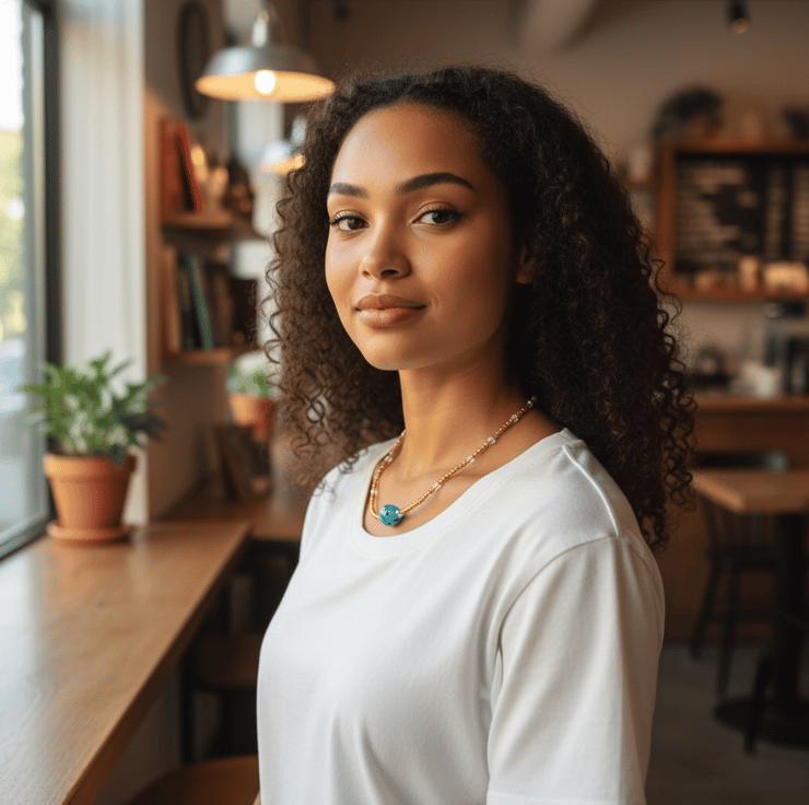 This necklace reminds me of a sunny day! with little pops of colour in the blue bead.