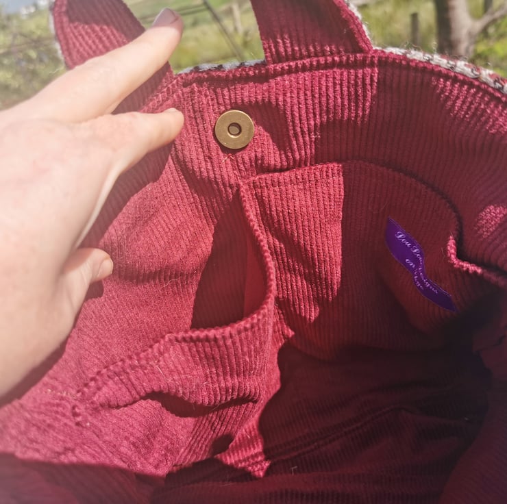 Each bag I make is a complete one of a kind bespoke bag. I go into my sewingroom and go on a wee journey with Tweed and see where it goes.