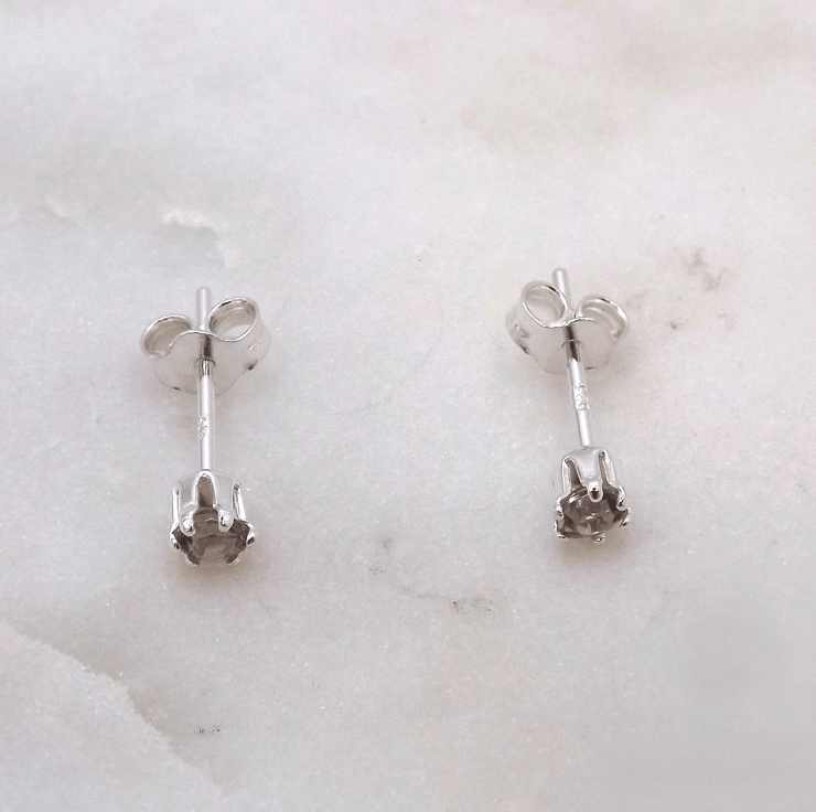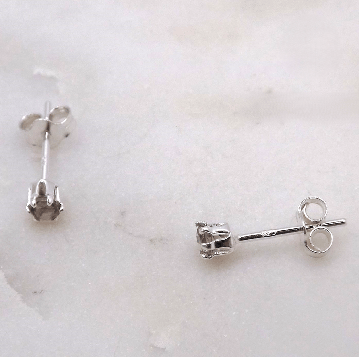 3mm 6 prong Sterling Silver ear studs supplied with scrolls. Stamped 925 on the ear stems and scrolls.