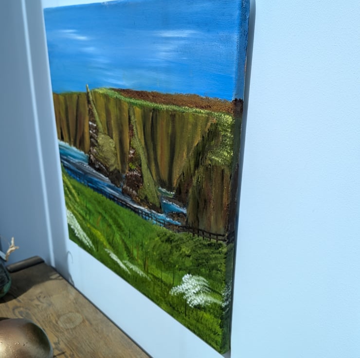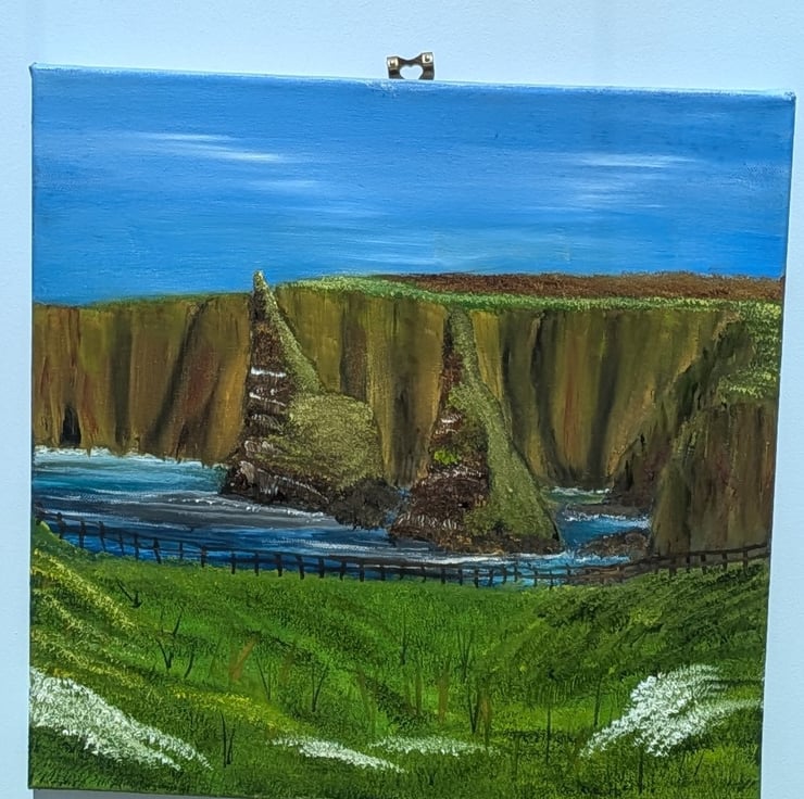 Tom's artistic endeavor was to encapsulate the untamed beauty and grandeur of the Stacks in this original Oil Painting.