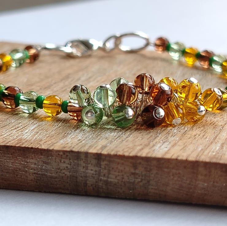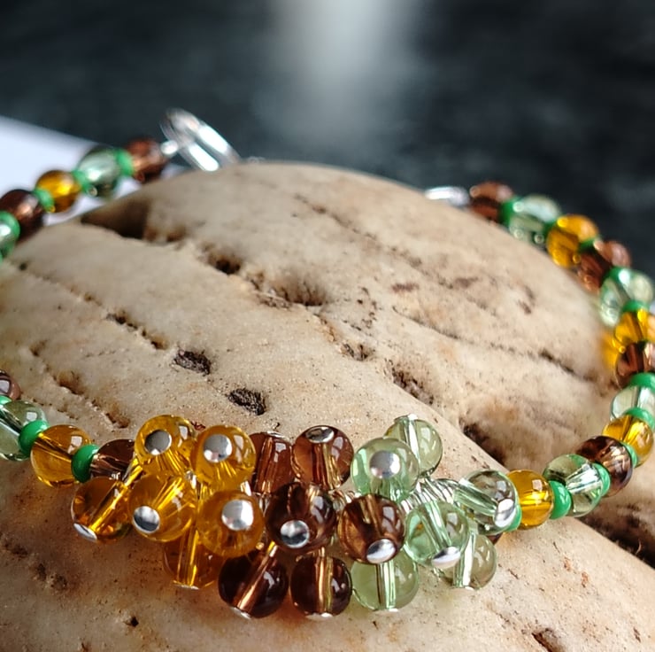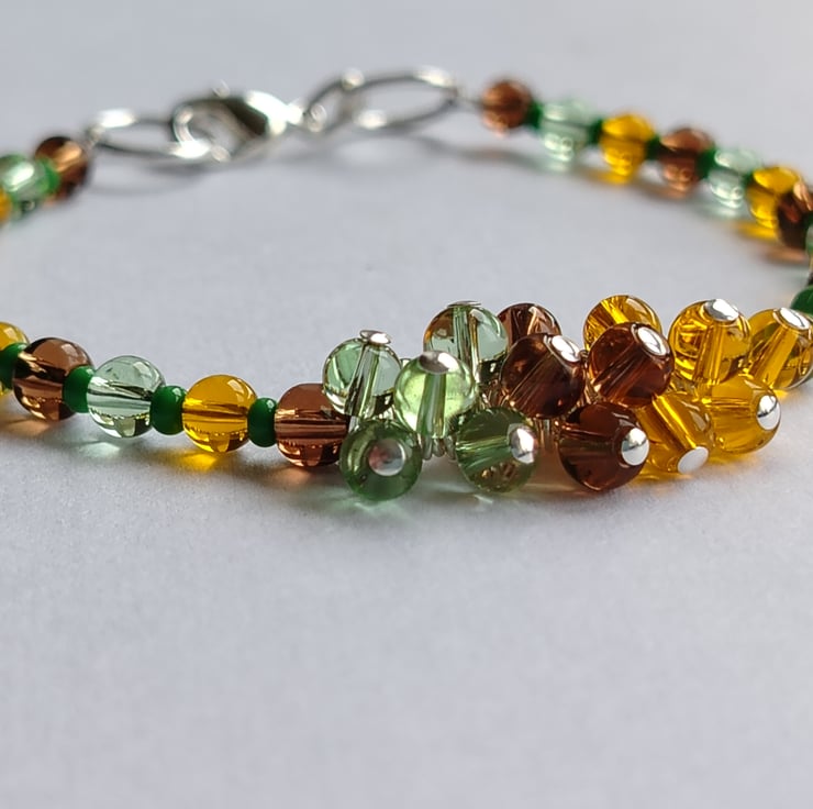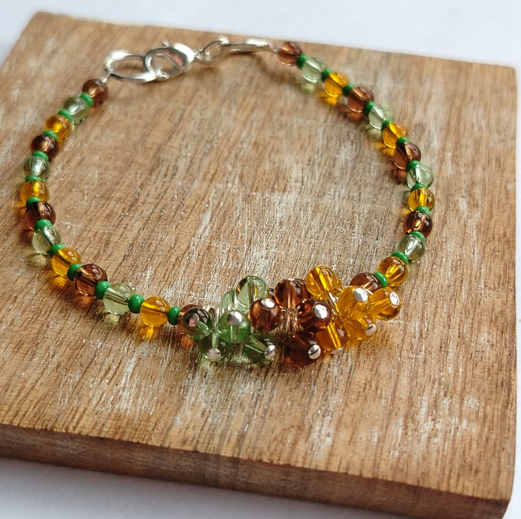 This handmade part cluster glass bead bracelet has been inspired by the colours of Autumn/Winter, such gorgeous Yellow, Greens and Brown,
