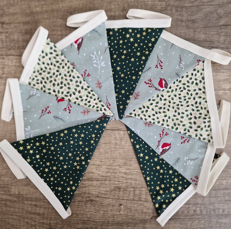 Christmas Bunting - Robins Green & Ivory