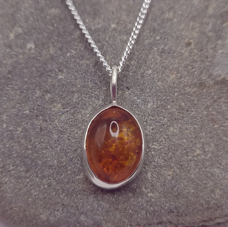 A beautiful, simple, and classic oval Baltic Amber Pendant.
