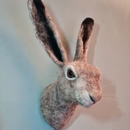 The jackalope itself is 2 inches tall and is mounted on a felt oval trimmed with pom pom trim and embellished with paper and sequinned flowers and a handmade yarn tassel.
