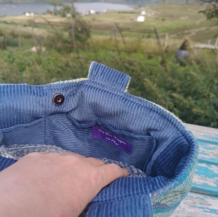 Each bag I make is a complete one of a kind bespoke bag. I go into my sewingroom and go on a wee journey with Tweed and see where it goes.