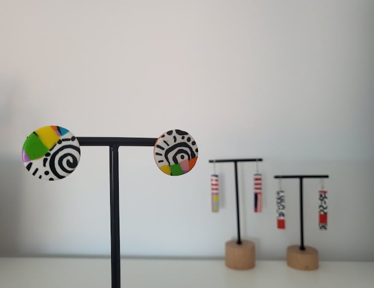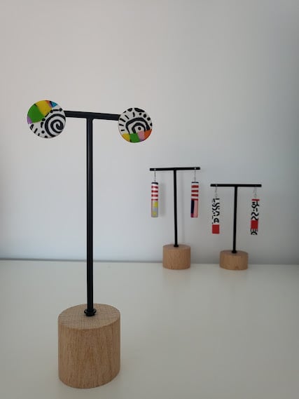 These earrings are inspired by the joyful spontaneity of children's art, the vibrant energy of graffiti, and the eclectic charm of Abstract Expressionism. We aimed to capture a feeling of playful freedom and boundless imagination, bringing a sense of warmth and happiness to your style. They're designed for those who appreciate unique, artisan-made accessories that tell a story.