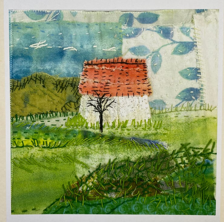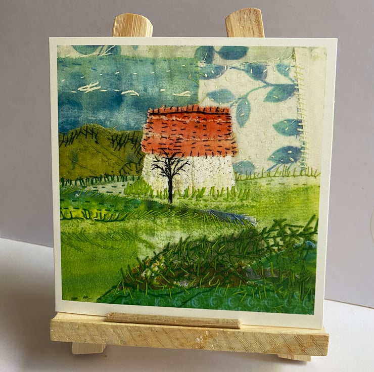 One of a series of 3, these are excellent reproductions of my textile art. Which makes them ideal to send, frame and keep.