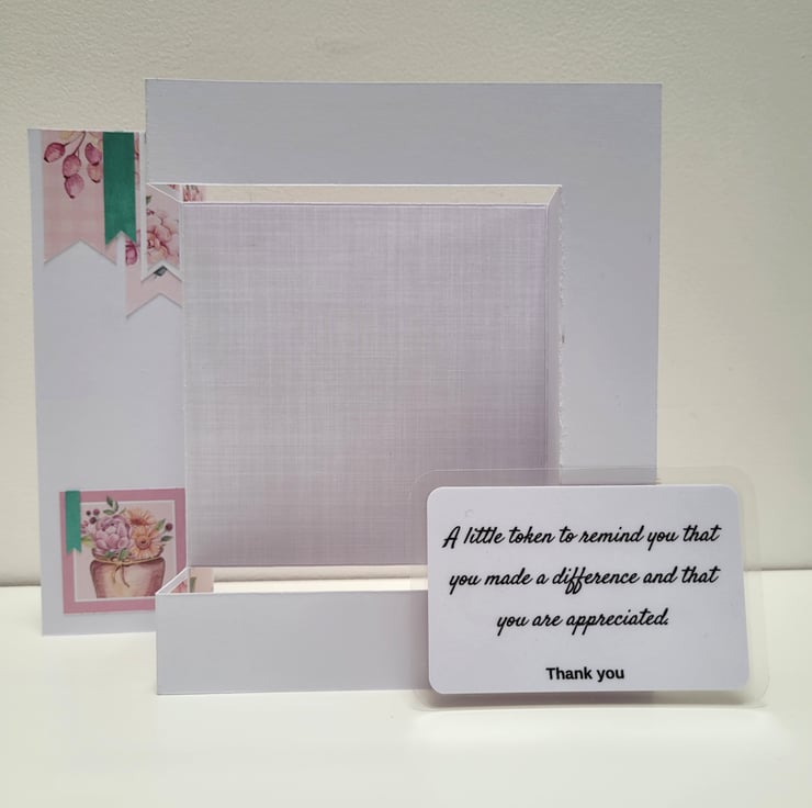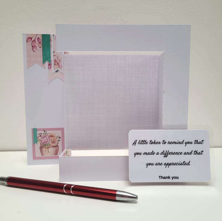 In addition to the card, there is a keepsake, laminated verse which comes with it's own envelope. The sentiment on the back of the keepsake card reads "A little token to remind you that you made a difference and that you are appreciated"