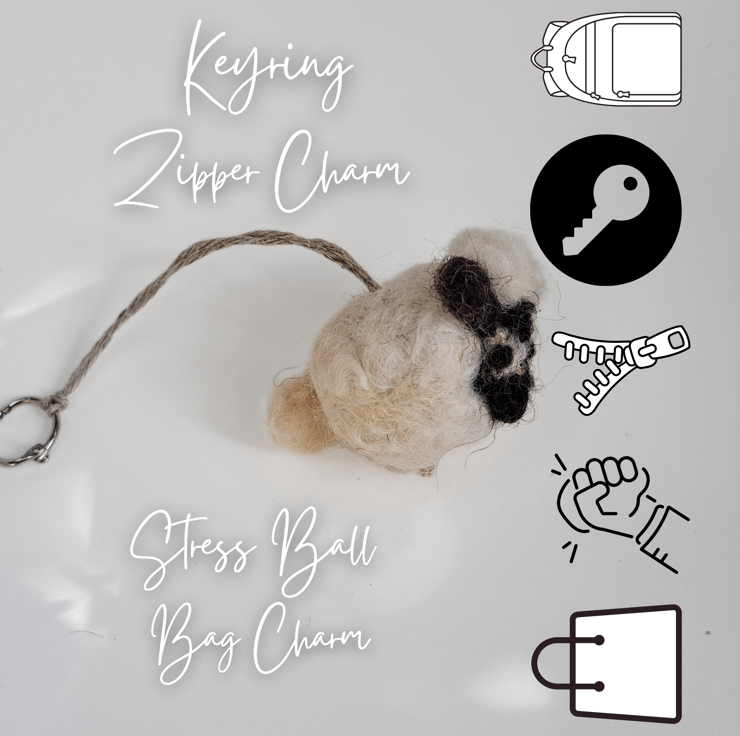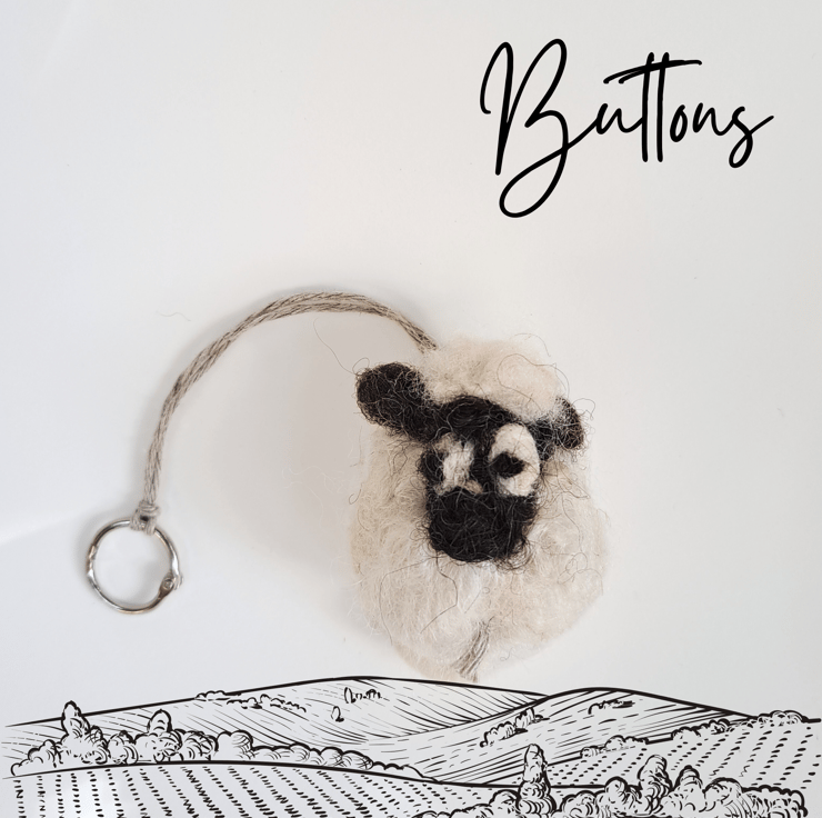 Buttons is a handmade wool sheep that fits right in as a keyring, bag or zipper charm, miniature stress reliever, or even a tiny woolly pet to keep you company. Each one is lovingly crafted using traditional wet and needle felting techniques.