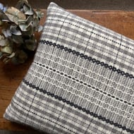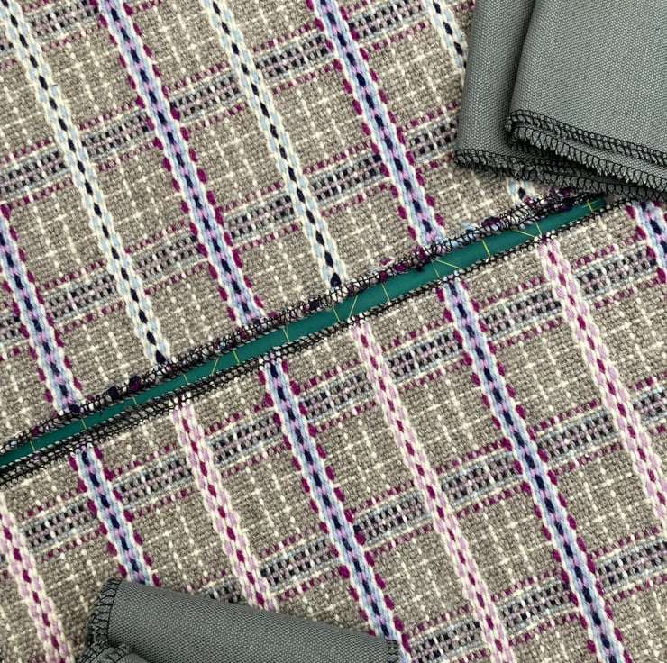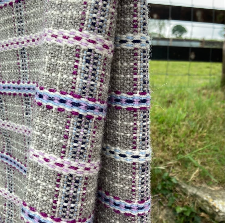 Handwoven wool fabric in shades of damson, lavender, pale blue & navy along with natural shades of grey and ecru wool - all British wool.