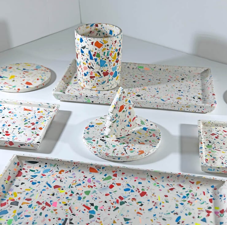 Rainbow Confetti Terrazzo Pencil & Makeup Brush Holder – Concrete Desk Organizer