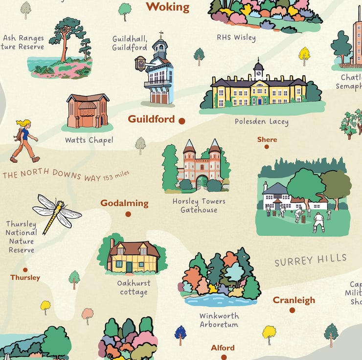 I have visited Surrey many times over the years to enjoy the glorious countryside and footpaths such as the North Downs Way, the Greensand Way, and riverside walks along the Wey, Arun and Thames.