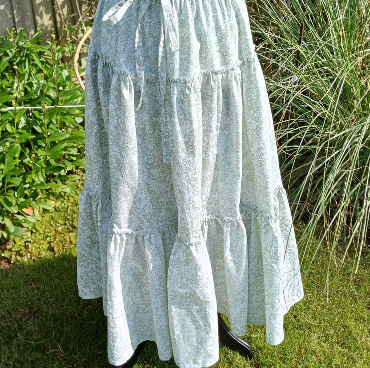 Green and white ditsy floral Boho skirt 3 tier gipsy skirt upcycled textiles