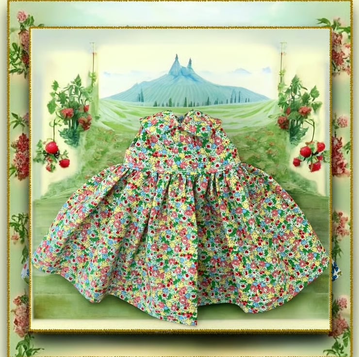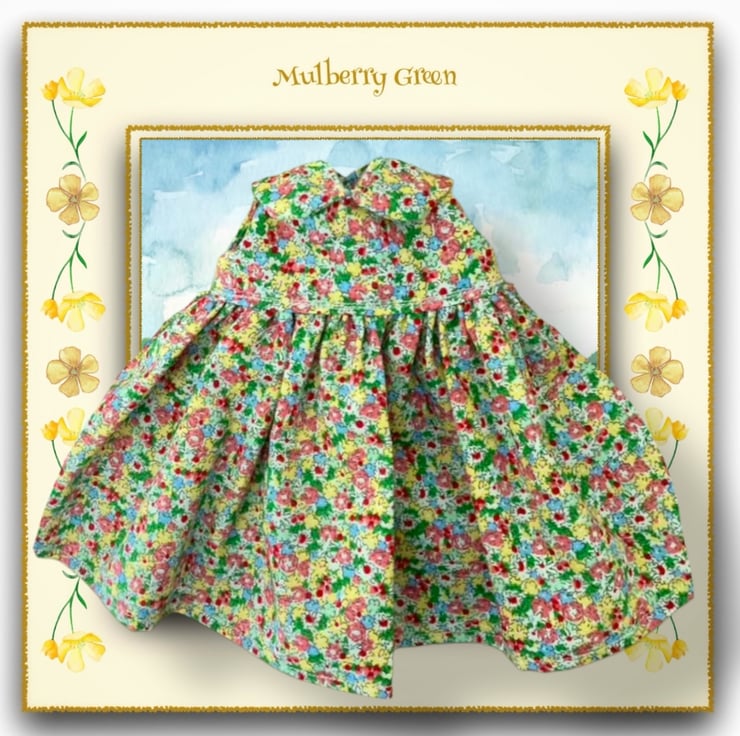 A pretty ditsy print dress to fit the Mulberry Green characters. The dress is made from best quality cotton and has a Peter Pan collar and a lined bodice.