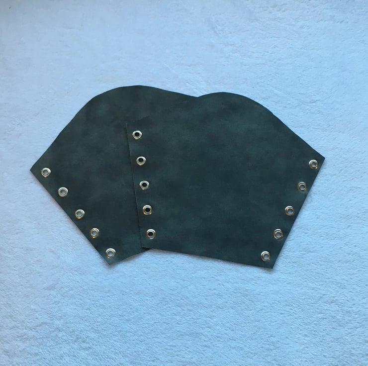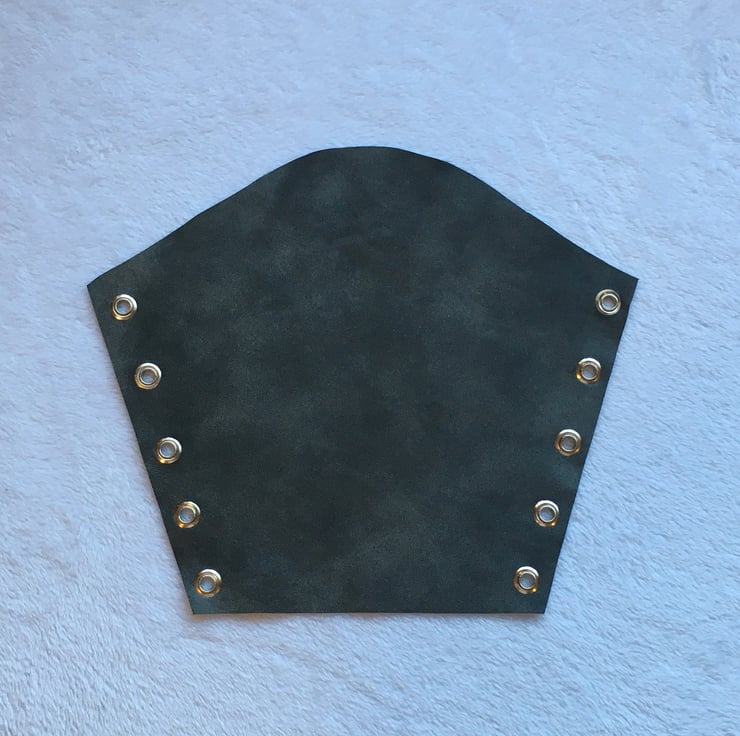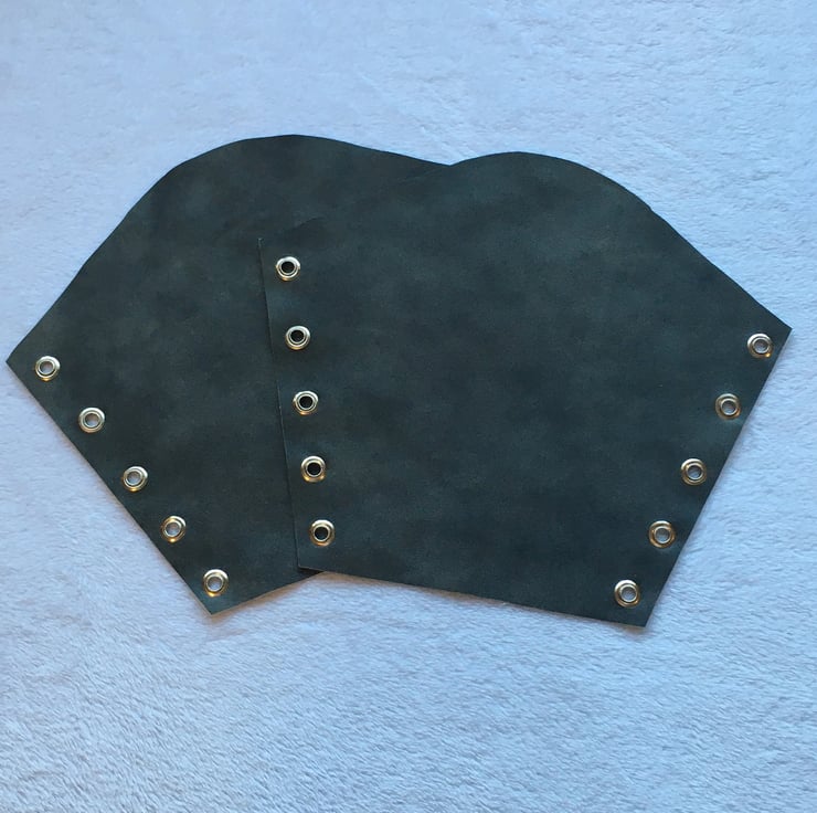 6" across the bottom, 10.5" across the top. 9" from top to bottom. Don't forget they will expand 3-4"after you put in the lacing. All bracers have nickel plated grommets. This leather is so soft to the touch and lightweight (roughly 1-2 oz in weight) - it will feel amazing wrapped next to your skin. All bracers come with lacing - - lacing colour will vary based on what is in stock to supply with the order.