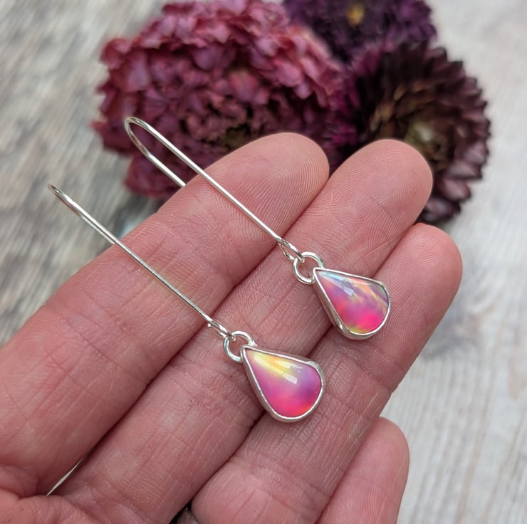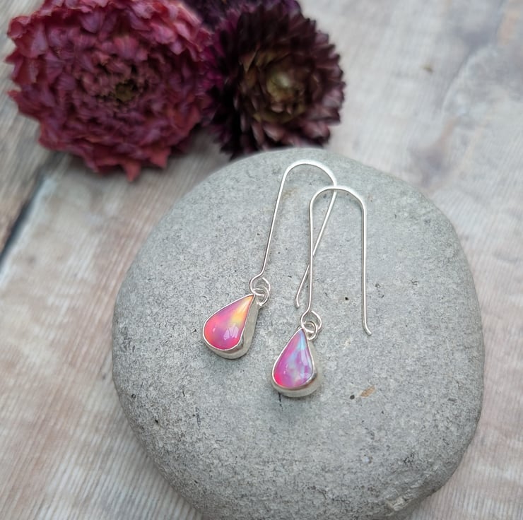STERLING SILVER TEARDROP EARRINGS WITH PINK AURORA OPALS