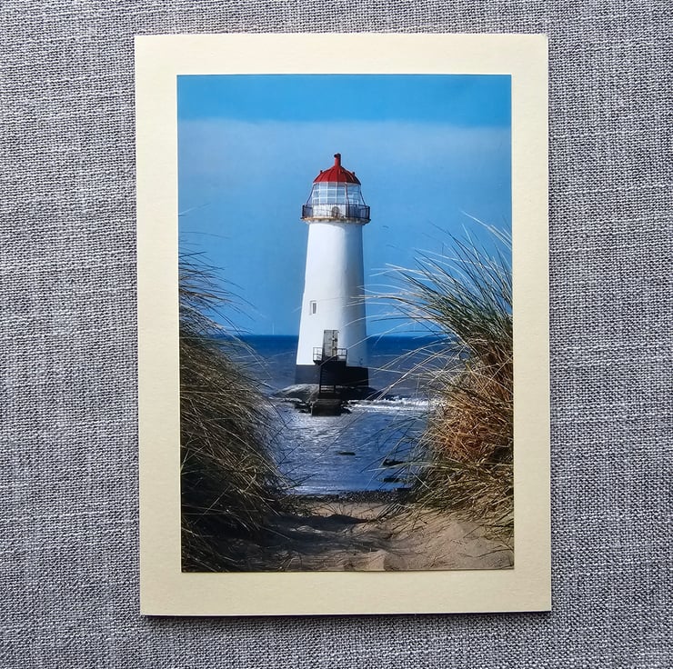 Talacre Lighthouse framed by Grasses Large Photographic Card Size 7" x 5" Blank