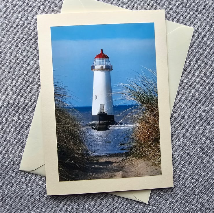 The Point of Ayr lighthouse is a much photographed and familiar landmark in Flintshire, north east Wales where I live. I have several other cards featuring it listed in my shop with photos taken at different times. This photo was taken in early April 2025.