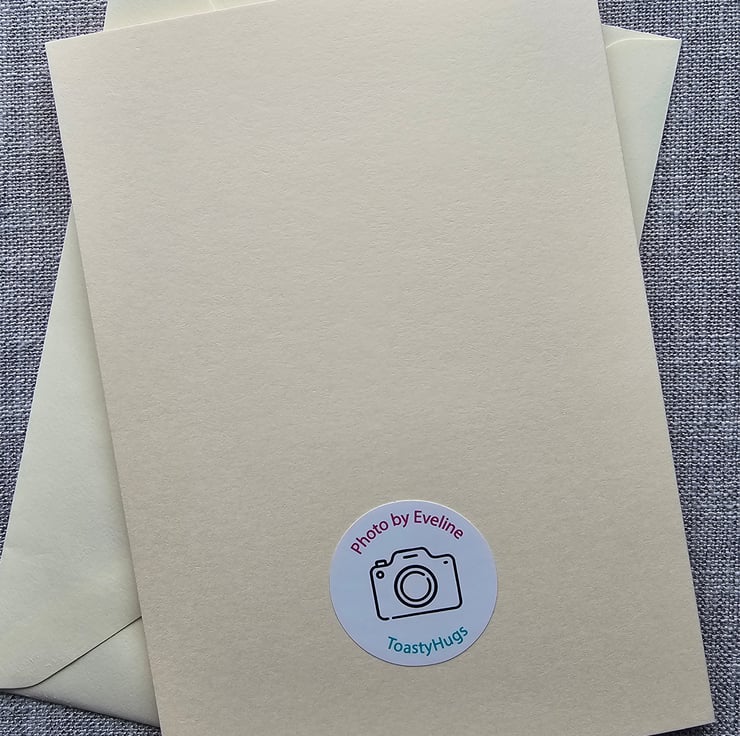 The card is made from a quality matt photo print (6" x 4", 15cm x 10cm) mounted onto a cream coloured card (7"x5", just under 18cm x 13cm)). It is left blank inside for your own message. It comes with a matching cream envelope.