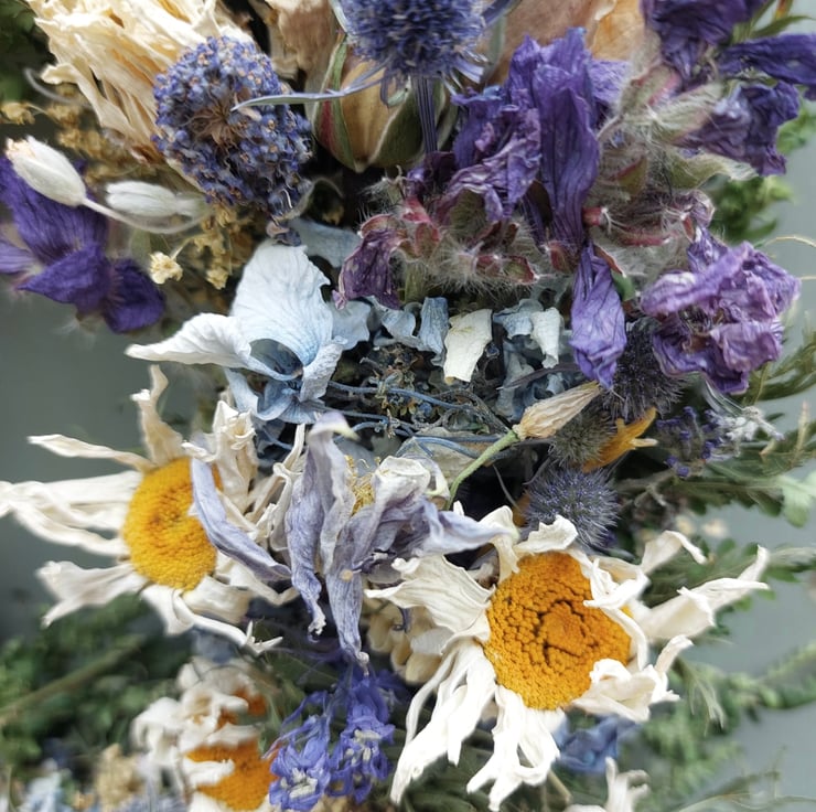Dried flowers can last for many months if they are well looked after – handled carefully, kept out of direct sunlight and away from water and humidity. Some of the flowers may naturally fade over time.