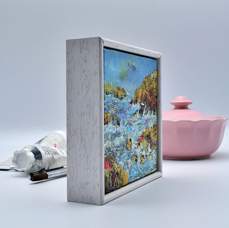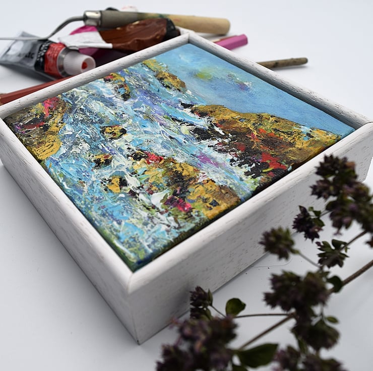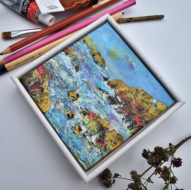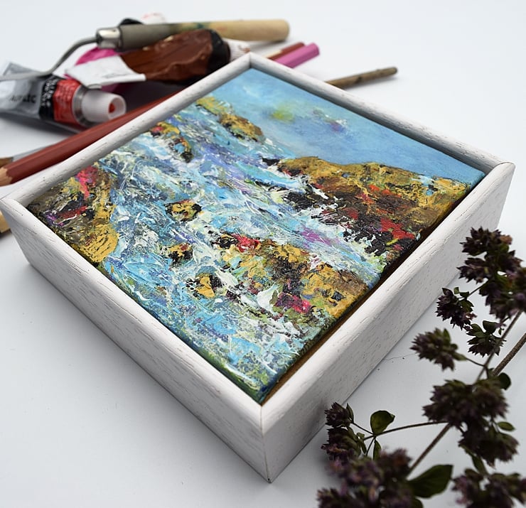 These mini canvases are perfect for brightening up any small space or to display with other miniature paintings.