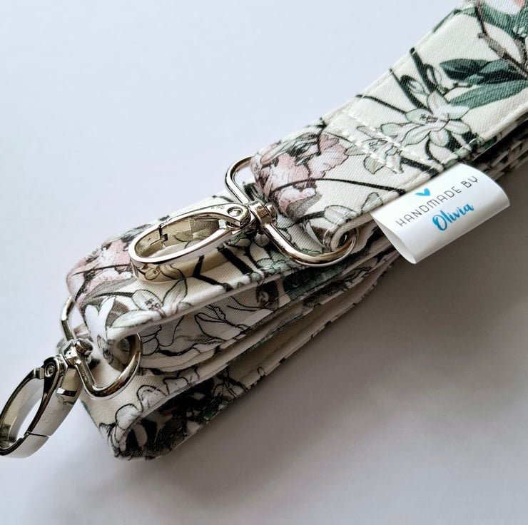 The strap can easily be clipped and unclipped onto a handbag. The wide strap provides comfort and support when worn on the shoulder.