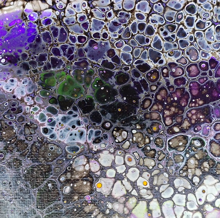Acrylic Pour Art Canvas, Wall Art - Purple, Black, White and Green Colour Scheme