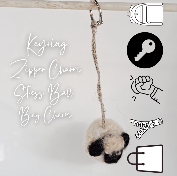 Cupcake is a handmade wool sheep that fits right in as a keyring, bag or zipper charm, miniature stress reliever, or even a tiny woolly pet to keep you company. Each one is lovingly crafted using traditional wet and needle felting techniques.