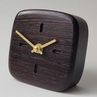 The clock mechanism has been recessed into the back of the clock, and the base has been cut at an angle to allow ease of viewing when placed on a desk.