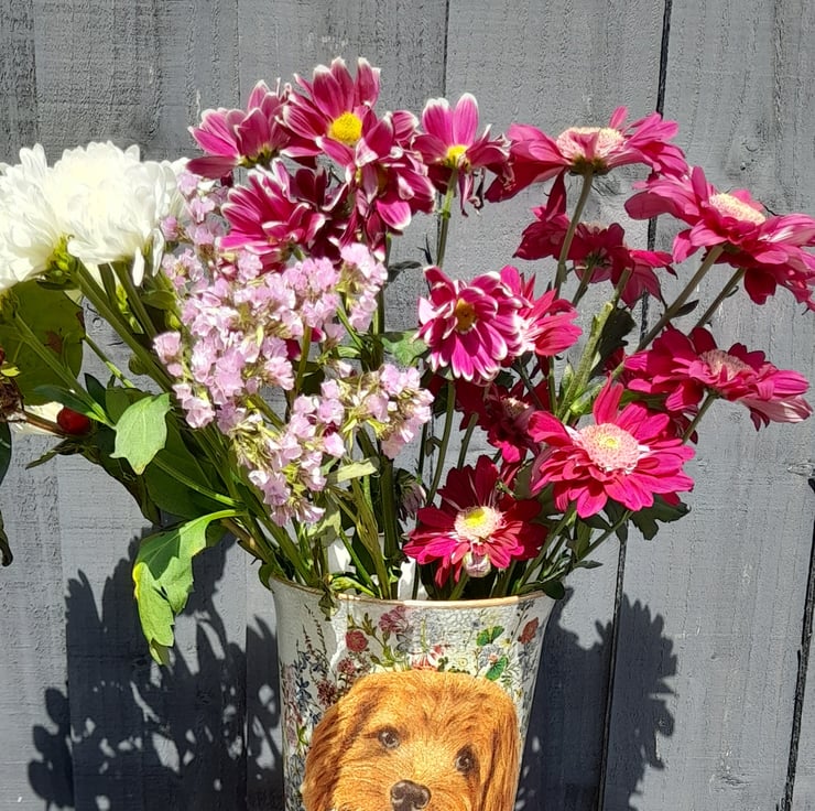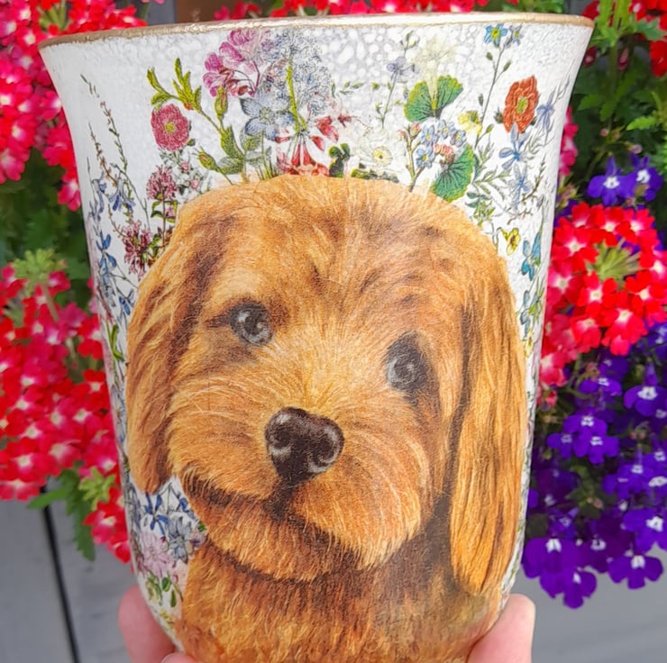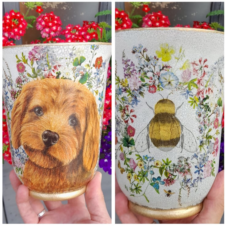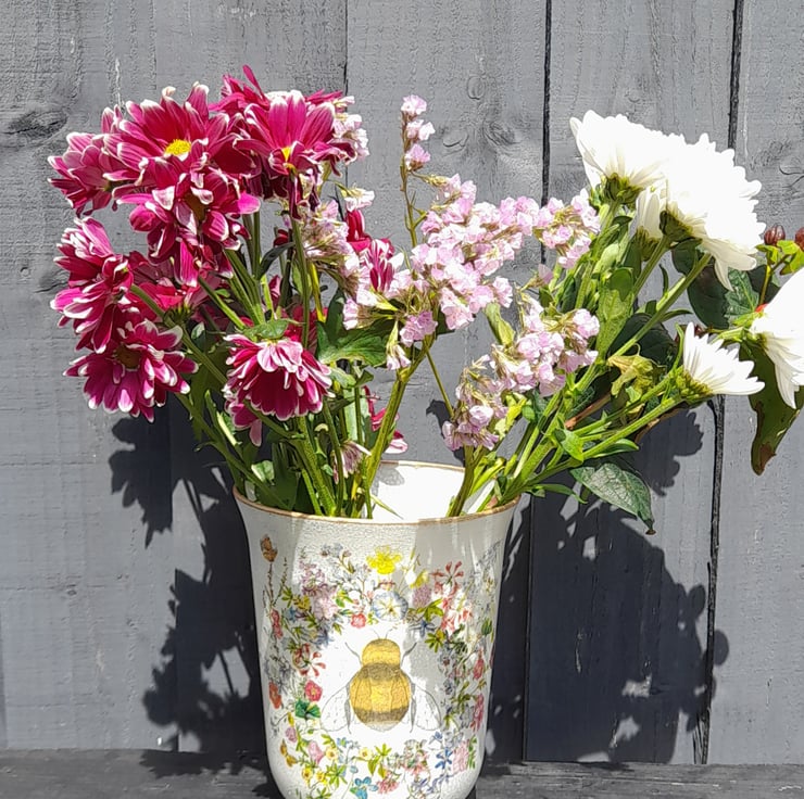 This lovely Hurricane Vase has been painted & then decorated with lots of lovely florals.