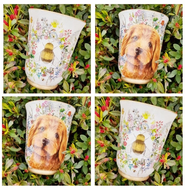 On one side features a dog, similar to a Cockapoo & the reverse side a Bee.