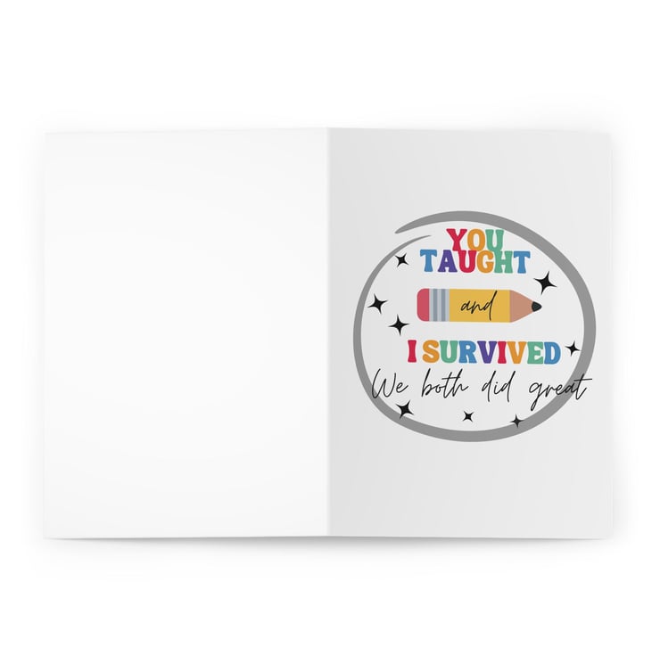 A little honesty never hurt, right? This funny card is the perfect way for any student to say You taught a lot. I barely kept it together. But hey, we both made it! Great for younger students (with a little help from grown-ups), this card brings a smile, a laugh, and a big thank you to the teacher who powered through every question, mess, and mystery smell.