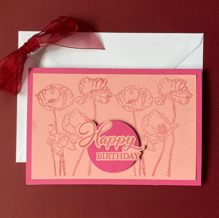 Bring a touch of hand-printed charm to someone’s special day with this floral birthday card, featuring delicate pink poppy blooms. This design is inspired by the softness of summer flowers, captured in fresh inks and layered tones.