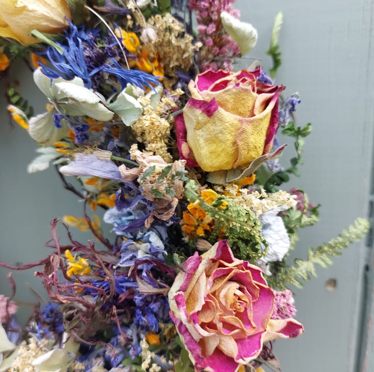 Dried flowers can last for many months if they are well looked after – handled carefully, kept out of direct sunlight and away from water and humidity. Some of the flowers may naturally fade over time.