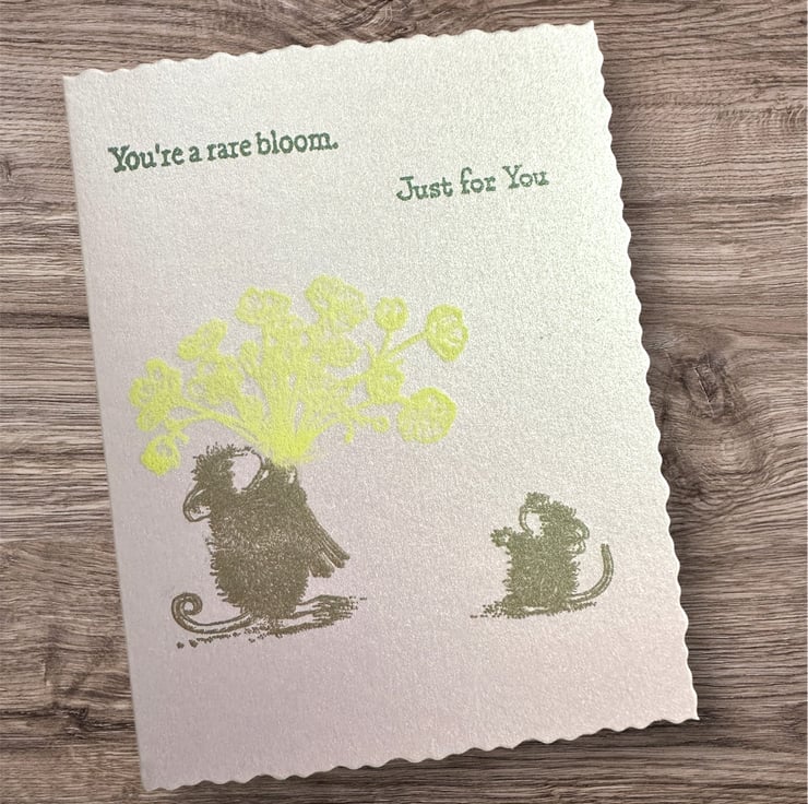 All my cards are hand cut and made, so minor blemishes, differences in colour, and occasionally a tiny size difference may occur.