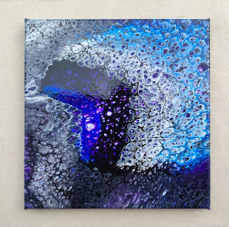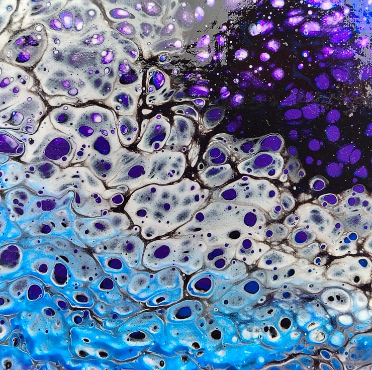 Acrylic Pour Art Canvas, Wall Art - Purple, Blue, Black & White Colour Scheme