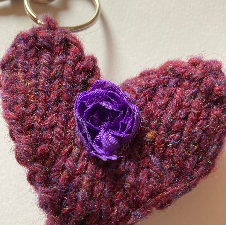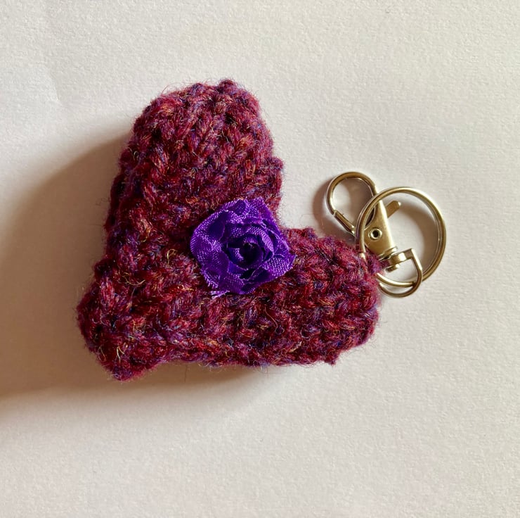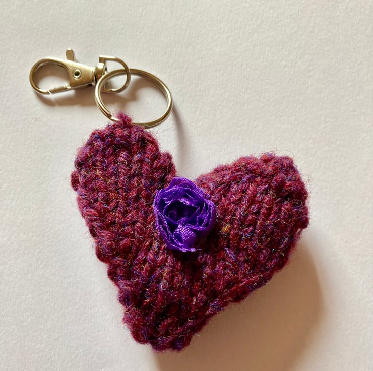 This hand knitted key ring is made using a chunky 100% pure new wool in a rich bramble shade.