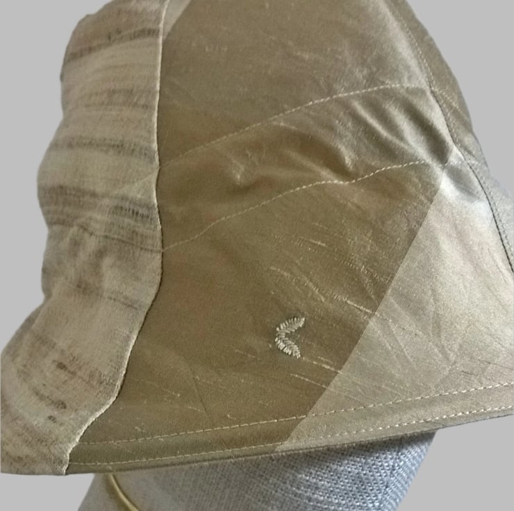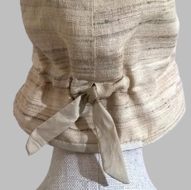 Lightweight and breathable summer bucket style hat with adjustable tie detail at the back, handmade in a beautiful mix of reclaimed silk satin and raw silk, and lined with cotton.