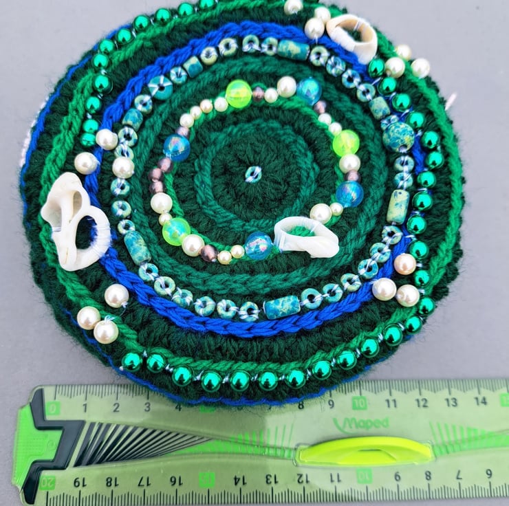 Beautiful ocean and mermaid inspired Crochet purse. With embroidery, beads and real shells. Lined with neoprene. Keep dry and away from velcro.