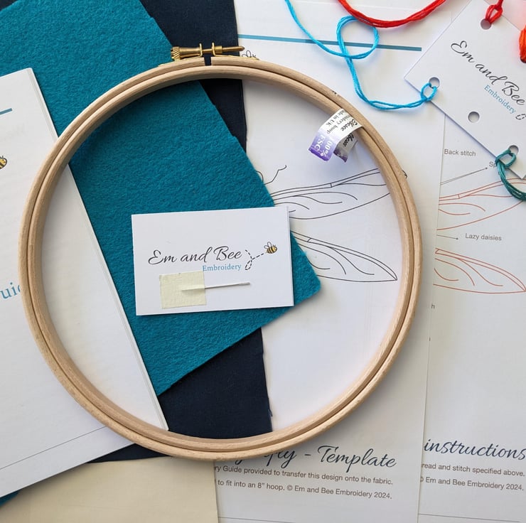 Create your own beautiful dragonfly artwork with this complete modern hand embroidery kit, suitable for beginners.