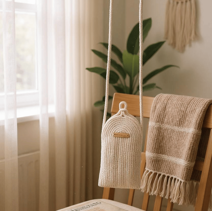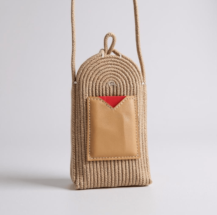 This very useful and easy to wear crossbody bag made of cotton rope ( imported from Ukraine) and real leather scrap. Very sturdy and practical. Can be used every day or on events.