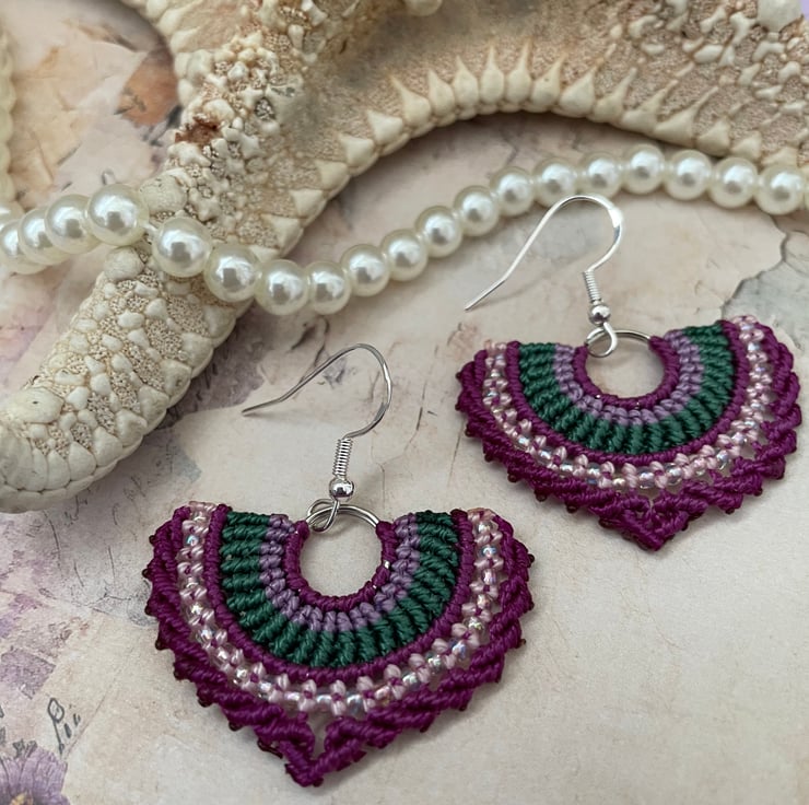 Designed and created by me in my studio in the Kent countryside using the best quality macrame c lon thread and Czech glass seed beads .